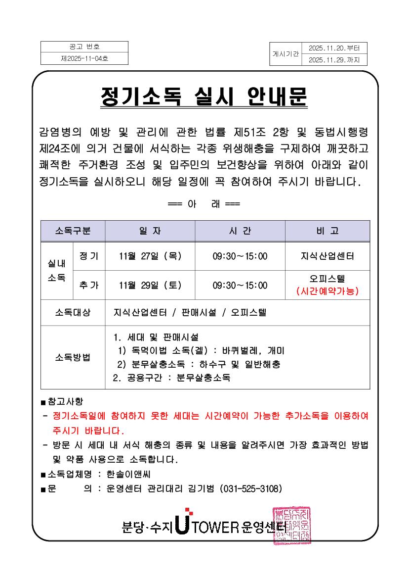 >> 정기소독 실시 안내문 운영센터 48 2025.11.20