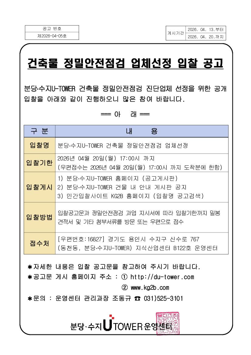 >> 건축물 정밀안전점검 업체선정 입찰 공고 운영센터 9 2026.04.13