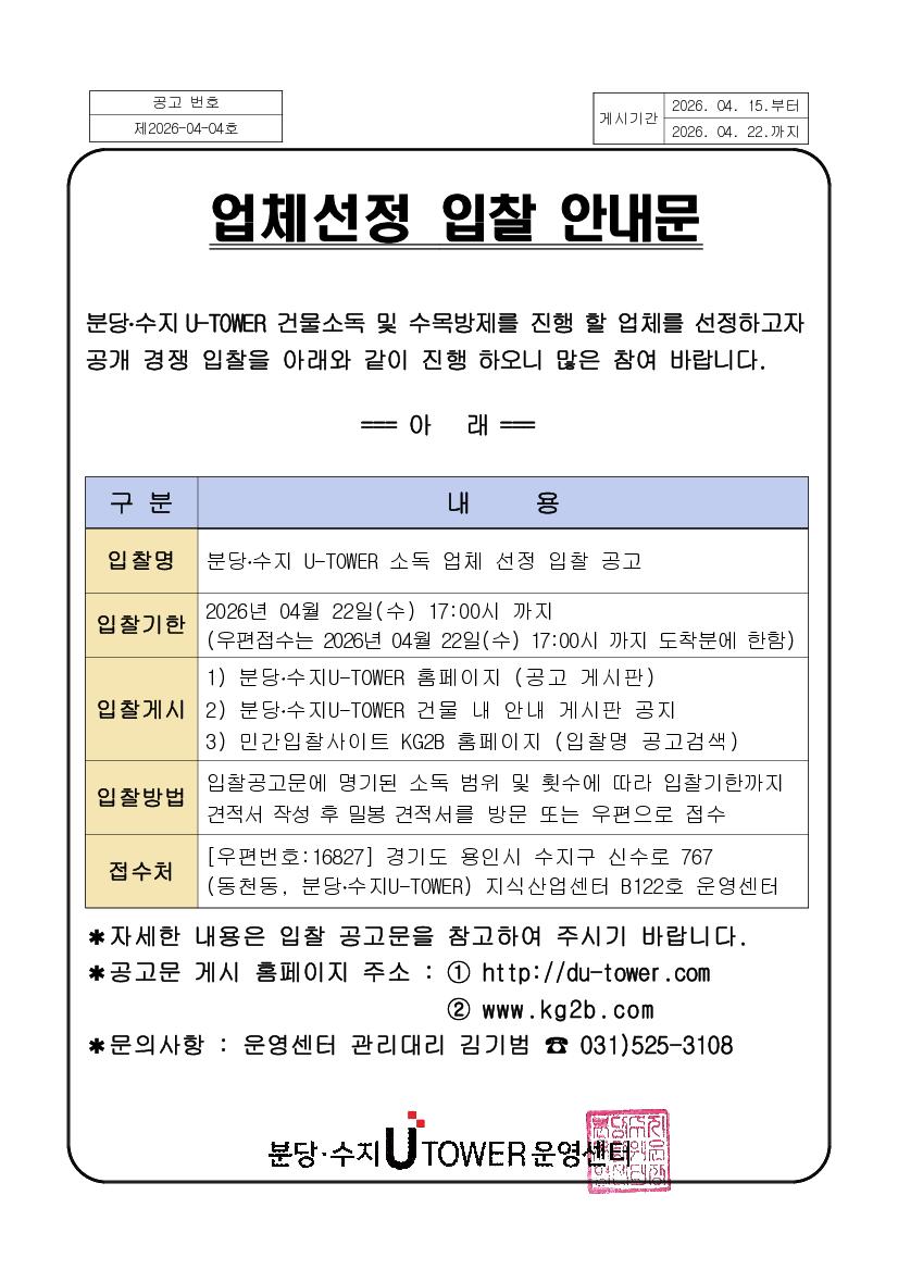 >> 업체선정 입찰 안내문 운영센터 50 2026.04.13